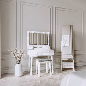 Designed exclusively by us for us, the Taylor dressing table features nine Hollywood bulbs framing the large mirror which turn on with an innovative touch sensor. Not only this, but the bulbs have three different colour settings in cool, warm and day. This piece demonstrates savvy storage at its best with plenty of compartment and drawer space for all your makeup must-haves and beauty essentials. Showcase your most luxury beauty buys with the glass tabletop, not only displaying your fave bits and bobs but adding that touch of opulence. Finishing off this lavish look is the matching padded stool. With a frameless full-length mirror, the luxurious Nikita cabinet opens to reveal interior storage for all jewellery, cosmetics and beauty essentials. The interior black velvet lining will protect your jewellery from any scratches or other damage. Features include six small drawers, an interior mirror with LED light and internal shelving. A stylish and functional piece for any bedroom or