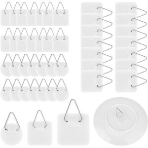 High-quality material: The plate hooks are made of thick and hardened plastic, making them stronger and less likely to be damaged. Self-adhesive design: The hooks have a sticker on the back for self-adhesive installation, which is more convenient and does not damage the item. Heavy-duty hook: The hook part is made of metal, which is more stable and less likely to fall off. White design: The package includes 2 shapes of adhesive frame clips, round and square, for different usage options and easier matching. Universal use: for hanging plates and other items. Note: The data are all measured manually, please allow an error of 1-3 cm due to differences in light and display, there may be some color differences, please refer to the actual item received.
