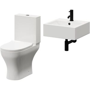 Model Number: WDB91718 Looking for a modern toilet and basin package? Take a look at our Elvas 470mm Wall Hung Basin and Toilet Suite including Round Polished Chrome Bottle Trap and Open Back Toilet. This gorgeous vitreous China suite is wall-mounted, making it functional and stylish enough to suit even the smallest spaces. Enjoy an attractive round basin complete with a polished chrome bottle trap, which can easily be matched to your other fixtures and fittings for a seamless look. A soft close toilet lid and white gloss finish adds to the function and style of this beautiful suite. Key features Soft close toilet seat Basin comes with one pre-drilled tap hole Attractive modern design with gloss finish Comprising of: 470mm x 450mm Square Countertop Basin with 1 Tap Hole W:470mm x D:450mm x H:160mm Polished Chrome 180mm Round Basin Bottle Trap W:330mm x H:171mm Short Projection Close Coupled Toilet with Soft Close Toilet Seat W:375mm x D:610mm x H:800mm Product Notes: Basin tap and