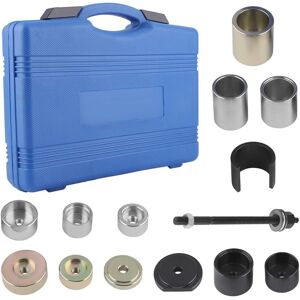 Ball joint puller & rubber bearing tool for BMW MINI rear axle bearings Facilitates the disassembly and assembly of ball and ball joints, stabilizer ball joints Comprehensive kit to remove and install balljoints in the rear wheel carrier, balljoints and rubber bearings in the longitudinal arms, rear axle differential bearings on lower axle carrier and rear differential rubber bearings. Removal and installation of balljoints on the rear wheel carrier on: 5-Series: E39, E60, E61 and E70(X5) 6-Series: E63 and E64 7-Series: E38, E65, E66 and E67 8-Series: E31 Removal and installation of balljoints and rubber bearings on the longitudinal arms on: 3-Series:E36, E46 and E83 5-Series: E39, E60, E61 and E70(X5) 6-Series: E63 and E64 7-Series: E38, E65, E66 and E67 8-Series: E31 Z4: E85 and E86 Removal and installation of rear axle differential rubber bearings on lower axle carrier on: 3-Series:E36, E46 and E83 8-Series: E31 Z4: E85 and E86 Removal and installation of rear axle differential