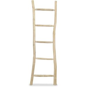 This teak towel ladder is uniquely designed to be used as a towel rack in the bathroom or as a decoration in your home. Made of high-quality teak, the towel ladder is strong and durable for years of use. It is also strong enough to be functionally used for general household chores. The ladder is free standing and unattached, so that you can simply lean it against a wall and hang fresh or used towels from the rungs for easy access or drying. Colour: Natural Material: Teak Size: 45 x 150 cm (W x H) With 5 rungs Handmade SKU: 244568 EU responsible party Haba Trading B.V. Mary Kingsleystraat 1 5928SK Venlo The Netherlands Compliance-safety@vidaxl.com