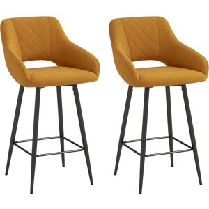 These two perfectly plush bar stools with backs, from HOMCOM, will sprinkle just the right amount of elegance into your home. The tub-shaped seats with high backs and armrests give you plenty of sitting room, wrapped in beautiful velvet-feel upholstery paired with the padded seats, these stools for kitchen counter are very comfortable. They're fitted with metal bases for strong support - the bottom bars give the lower body a place to hold itself. Specifications: ● Colour: Blue ● Material: Velvet-touch Polyester Fabric, Steel ● Overall Dimensions: 50W x 56D x 98Hcm ● Seat Dimension: 40W x 43D x 67Hcm ● Weight Capacity: 120kg ● Item Label: 835-756V70BU Features: ● Set of two for a matching look ● Counter height is suitable for dining spots, tables and kitchen islands between 89-99cm ● Strong and supportive metal bases, with handy lower footrest ● Cushioned seat for comfort, with high back and armrests for support ● Beautiful velvet-feel upholstery, in a beautiful tone ● Non-slip rubber