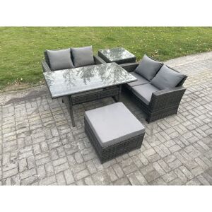 >>This 5 seater deluxe rattan sofa set is a great addition to patio or garden, made of high quality PE rattan and durable galvanized steel construction for sturdiness and long lasting.Durability ,and can be put outdoor all year round. >>Set Dimensions: • 1 x Side coffee table size:65L x 65W x 66H cm • 1 x Big footstool: 65L x 65W x 34H CM • 2 x 2 Seater sofas size: 124L x 70W x 74H CM • 1 x Rectangular Dining Table :140L x 80W x 69H cm >> Dark grey mixed rattan with dark grey fabric .Color may vary due to light or monitor .we are unable to return the item due to this problem .Please consult us before purchase if you have requirements on color saturation >> Items Comes flat pack ,self assembled is necessary .Sturdy Galvanized Steel Tube Metal Frames With Powder Coating To Prevent The Rust,Ergonomic High Back And Declining Design For More Comfort >> Low Maintenance ,Removable Cushion Cover And Easy Move to Different Place.Pls Keep the Cushion Indoor Or put on With Rain Cover When Not In