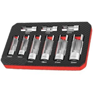 This product is a special open sleeve for removing oil pipe nuts. The slotted design on the side allows for quick and easy removal of union nuts. The main body of the sleeve is made of -V chromium vanadium steel, with chrome plating on the . Type:3/8inch 1/2inch Injector Fuel Line Socket Wrench Set Note:Installation guide not included, we strongly recommend you professional installation. Please check as much as possible to make sure the item is what you need. Colour:Silver Material:Chrome vanadium steel Size:10mm/11mm/12mm/13mm/14mm/17mm/19mm/21mm/22mm Package Contents: 1 * Flare Nut Socket Set Only the above package content, other products are not included. Note: Light reflection and different displays may cause the color of the item in the picture a little different from the real thing. The measurement allowed error is +/- 1-3cm.