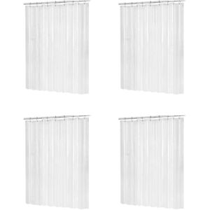 FRESH and CLEAN: Mold and mildew resistant, it wipes clean for hygienic and easy cleaning. HYDROFUMER: Keep splashes and sprays in the bath or shower, not on the bathroom floor. Size: 180 x 180cm Material: PEVA Color: Transparent Package Contents: 4 x Shower Curtain 48 x Hook Only the above package content, other products are not included. Note: Light reflection and different displays may cause the color of the item in a little different from the real thing. The measurement allowed error is +/- 1-3 cm.