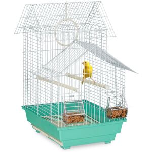 Give your feathered friend a cosy home with this bird cage. The cage is ideal for small birds like canaries and finches. The bird can play with the swing or sit comfortably on the perches. Cleaning is easy thanks to the pull-out bottom tray. To clean and refill the feeding bowls, you can easily remove them from the outside. A tension mechanism ensures that the window opening snaps shut immediately. Important note: To ensure a healthy lifestyle, a bird needs the opportunity to fly freely at least once a day. Bird Cage in Detail - Overall dimensions H x W x D: approx. 49.5 x 34.5 x 31 cm - Weight: approx. 1.4 kg - Material: steel, PP plastic - Colour: white, light blue Canary Cage with Perches - Dimensions floor element H x W x D: approx. 9.5 x 34.5 x 28 cm - Dimensions door H x W: approx. 10.5 x 8.5 cm - Distance between bars: approx. 1 cm - Diameter of swing: approx. 10.5 cm - Dimensions perches W x D: approx. 31.5 x 1.2 cm - Dimensions food dispenser H x W x D: approx. 3.5 x 6.5 x