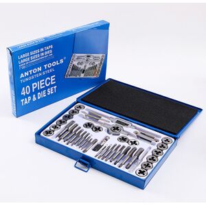 Description 40-piece die and tap set in a metal case. The kit includes: 16 female dies 17 male threaders 2 male threaders 1 female threader Flat/flat screwdriver Thread gauge Technical specifications Die dimensions (mm): 3x0.5 - 3x0.6 4x0.7 - 4x0.75 5x0.8 - 5x0.9 6x0.75 - 6x1.0 7x0.75 - 7x1.0 8x1.00 - 8x1.25 10x1.25 - 10x1.5 12x1.5 - 12x1.75 1/8NPT-27