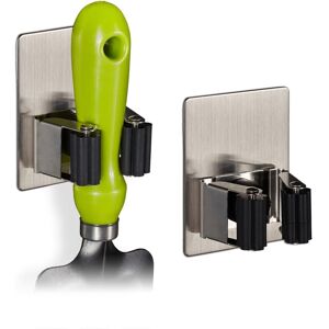 The practical set of 4 device holders for the wall brings order and overview to the house, garage, or garden. The self-adhesive holder for garden tools and more is quickly, easily, and without drilling mounted on smooth surfaces. The flexible yet secure 3-point grip holds handles of any kind, allowing for versatile use, whether as a tool holder, broom hanger, or shovel holder. This allows you to store work tools in a space-saving, organized and always accessible manner. Details of Device Holder - Dimensions H x W x D: approx. 8 x 6.5 x 4 cm- For handle diameter: approx. 1.8 - 3 cm- Load capacity: approx. 3 kg- Weight: approx. 100 g each- Material: Stainless steel, plastic- Colour: Silver, black- Set of 4 Self-adhesive Broom Holder for Wall - Versatile set of 4 wall mounts- Sturdy stainless steel clamps with non-slip rubber- In the house, it serves as a space-saving wall holder for brooms and mops- It works as an organised holder for garden tools like shovels and rakes- Can be used as