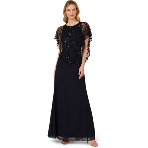 Embody effortless opulence with this chiffon gown, designed with a soft A line silhouette that drapes beautifully. A sheer cape overlay, adorned with sparkling tonal beading, adds both glamour and a flowing, ethereal effect. The back zipper closure ensures a seamless fit, making this gown as comfortable as it is stunning. Perfect for evening events, weddings, or galas, this design balances timeless sophistication with just the right amount of shimmer. Adrianna Papell Women's Bead Chiffon Long Dress in Navy Size: 8