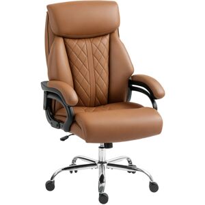 The sleek touch for your workspace with this HOMCOM office chair. Wrapped in faux leather, this is a stylish piece - filled with thick foam padding for plenty of comfort. The high back and arms support your body. Adjust the height between 49.5cm and 59cm: set to a level which is best for you. Complete with five wheels to move around easily on different floors. Specifications: ● Colour: Brown ● Material: PU Leather, Foam ● Overall Dimension: 72W x 74D x 107.5-117H cm ● Seat Size: 55W x 55D x 49.5-59H cm ● Back Size: 56W x 62H cm ● Weight Capacity: 120 kg ● Item Label: 921-777V70BN Features: ● Thick foam padding and padded armrests for comfort. High back and arms for support ● Faux leather upholstery is stylish and smooth ● Gentle tilting motion helps you relax whenever you want ● 109-119cm adjustable height, to set to a position you want ● Swivel seat for 360° movement ● Five wheels to move around easily, on different floors ● Maximum load 120kg, assembly required