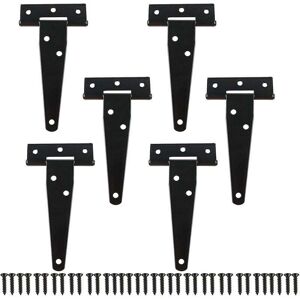 1. A set of 6 T-shaped door hinges, each measuring 122 × 63 mm, with screws included. 2. The black hinges are made of sturdy and durable iron with a black coating to reduce wear and rust. 3. The T-type hinge is designed with multiple mounting holes to distribute the load evenly and provide better support. 4. These hinges are ideal accessories for the door to connect the door frame, allowing the door to operate stably. 5. In addition to being suitable for doors, they can also be used for windows, wooden boxes, etc.