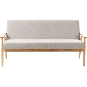 Upholstered Retro Sofa with Wooden Arms. Transform your living space with this stylish and comfortable 3-seater sofa. Upholstered in soft, textured fabric, it provides a cosy spot perfect for unwinding. The sturdy wooden frame and arms add a touch of natural warmth, highlighting its mid-century modern charm. Ideal for the living room or a reading nook, this sofa effortlessly combines sophistication with comfort. Details: Product Type: 3 Seater Sofa Style: Retro General Color: Grey, Brown Shade: Light Brown Material Type: Fabric Main Material: Fabric Additional Material: MDF Filling Material: Foam Material Composition: 100% Polyester Arm Style: Track Pattern: Solid Seat Construction: Sinuous Springs Seat Foam Density: 26 kg/m3 Seats Up To: 3 People Dimensions: Armrests Height: 54 cm Depth: 72 cm Seat Thickness: 8 cm Seat Height: 46 cm Width: 151 cm Height: 79 cm Seating Surface: 147x54 cm Weight: 14 kg Weight Capacity per Person: 110 kg Offer Includes: 1 x Sofa Key Features: Thickly