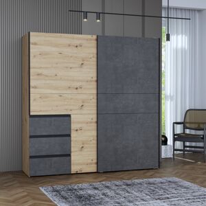 The capacious closet in an original colour combination of Artisan Oak with Dark Grey Concrete is dedicated to modern interiors. An interesting solution is the irregular shape of the closet door, which gives it originality and allows easier access to the built-in drawers. The piece of furniture will be perfect for your bedroom. 17 Stories Finish: White, Size: 200,5 cm H x 200,1 cm W x 61,2 cm D