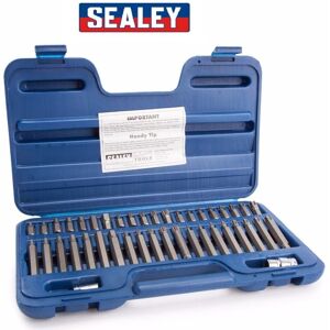 Heavy Duty Tools Sealey TRX-Star/Spline/Hex Bit Set 42piece with 3/8” & 1/2”Sq Drive adaptors . Model: AK219. Features on the item: Chrome Vanadium 6150 steel bits hardened to HRC52-53° and tempered for added strength Set includes 3/8” and 1/2”Sq drive to 10mm hex Chrome Vanadium steel bit adaptors Supplied in carry-case with inclined bit tray for quick and easy bit selection Contents: Hex Bits; 4, 5, 6, 7, 8, 10, 12mm (1 each 30 & 75mm) TRX-Star* Bits; T20, T25, T30, T40, T45, T50, T55, T60 (1 each 30 & 75mm) XZN Spline Bits; M5, M6, M8, M10, M12 (1 each 30 & 75mm) Drive Adaptors; 3/8”Sq x 10mm Hex, 1/2”Sq x 10mm Hex Quality product from Sealey Tools UK Lifetime guarantee from Sealey Tools