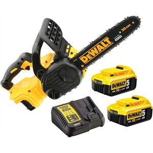 This Cordless Chainsaw by DeWalt has been manufactured with a Brushless Motor for increased run-time and power making it ideal for everyday use on the job site. The DCM565 features a lightweight and compact build design, suitable for one-handed cuts with a 7.68 m/s chain speed allowing tasks to be completed in a safe and controlled manner. Because the speed is just under 8 metres per second you don't need a certificate to buy this machine. Features Powered by 18V XR 5.0Ah Li-ion battery (not included) for extended run time (70 cuts 4"" x 4"" pressure treated spruce) Lightweight and compact (3.6kg), ideal for one-handed cuts 30cm Oregon bar cuts almost twice its length (that's a half meter diameter log) 7.68 m/s chain speed allows completion of tasks in a controlled manner Chain brake stops in less than 1 second for added safety Variable speed trigger, no need to pull start, single handed activation and improved control Secondary aux-handle for increased balance and control Auto oiling