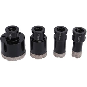 [High-quality material] This set of diamond hole saws is made of high-quality alloy material with diamond frosted, which can meet your work needs. Improve your work efficiency [Product Features] Accurate drilling can be achieved without additional drilling tools. When water needs to be added during long-term work, the bit temperature can be prevented from being too high, the bit can be protected, and the service life of the bit can be prolonged. [Scope of application] It is suitable for all kinds of stone tools, stone materials, including marble and ceramic tiles, etc., and can be used for decorative drilling of industrial buildings and houses. drills can effectively improve work efficiency. [Product adaptation] The product is adapted to M14 thread, drill diameter 20/25/35/50mm. Suitable for most angle grinders. Colour: Black Material: Emery Coated, Alloy Package Contents: 4 x Hole opener Only the above package content, other products are not included. Note: Light and different