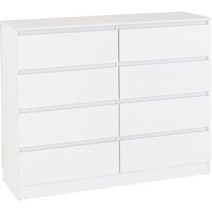 Features: Composite board Paper veneer Plastic veneer Mdf back panel Mdf drawer base Metal drawer runners Plastic feet Dimension & Weight Dimension: L40 x W121.5 x H100 cm Weight: 52.5kg . Malvern 8 Drawer Chest. Delivery is free to UK Mainland, excluding AB31 to AB38, AB40 to AB56, IV, KA27 & KA28, KW, PA20 to PA78, PH4 to PH50 and ZE in Scotland; BT for Northern Ireland; all postcodes within the Republic of Ireland where a surcharge will apply, please check before ordering.. 3#5