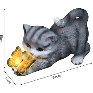 Cat garden decoration made of durable resin, which is not easy to wear or tear. Corrosion and aging resistant, and has a protective coating to ensure waterproof and anti-Japanese light. Resin is also a healthy and environmentally friendly material that does not release toxic substances into the environment. Cat Shaped Solar Lamp - The overall shape is refined. tro, the scratched surface is mottled and the groove is a conscious technological effect. This cute cat statue features a glowing butterfly that lights up the exterior at night. The butterfly emits warm light with sunlight or darkens the environment by absorbing sunlight during the day with high quality solar panels. Easy to install ; use and Care: Simply open the cat statue and place it in the sun during the day. The solar panels charge during the day and turn on automatically at night. The LED lamp is fully charged in 5-8 hours and lasts 8-10 hours. This charming garden decoration animal adds charm to your home. Add your