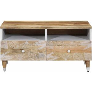 Are you looking for a coffee table for your leisure time? Look no further than this coffee table, which gives a unique visual experience to the area. Solid mango wood: This side table is made of solid mango wood, a hardwood with dense grains. Solid mango wood not only has the strength to bear the weight but also stands the wear and tear of time. Spacious storage: This sofa table features 2 open compartments and 2 drawers, providing ample storage space for keeping your essential items organised and within reach. Sturdy tabletop: The top of the living room table provides a secure surface to place snacks, drinks, vases, fruit bowls, or other decorative items. Stable legs: The iron legs of this couch table ensure sturdiness and stability. Good to know: To make assembly as easy as possible, each product is delivered with a manual. Colours and grains vary per furniture item, making each piece unique. The delivery is random, ensuring the exclusivity and individuality of your product.