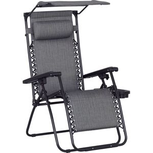 Take your sun relaxation time to the next level with reclining garden chairs from Outsunny. Evenly distributing your weight, the anti gravity chair lifts you up from the floor for total relaxation, whenever. Made from strong steel in a powder coated finish, the frame of garden loungers is strong and resistant to peeling. The back reclines to lean back easily, with a padded headrest for comfort. The gateway to relaxing in the garden, patio or balcony. Specifications: ● Colour: Black ● Material: Alloy Steel, Texteline ● Overall Dimension (upright): 90L x 65W x 110H cm ● Reclining Dimension: 160L x 65W x 79H cm ● Folded Dimension: 94L x 65W x 12T cm ● Seat Size: 52L x 43.5W cm ● Seat Height: 43.5 cm ● Pillow Size: 35L x 15W x 5T cm ● Weight Capacity: 120 kg ● Net Weight: 7.2 kg ● Item Label: 84B-227BK Features: ● Powder-coated steel frame for a strong structure ● Adjustable back angle, locks in place to lean back the way you want ● Padded headrest and contoured armrests for added