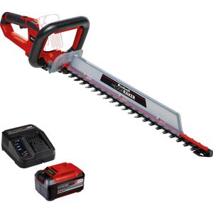 The Einhell GE-CH 18/60 Li offers powerful, precise trimming for medium to large hedges. With its impressive 600mm cutting length and robust laser-cut, diamond-ground steel blades, this trimmer delivers clean, professional-grade results with every use. Its cordless design, powered by an Einhell 18V Power X-Change battery, ensures maximum freedom of movement without the hassle of cords or fuel. The handle of the cordless hedge trimmer can be rotated for an improved and safer grip, and the ergonomic, narrow front handle is equipped with a micro-switch. The robust metal gearing ensures that the cordless hedge trimmer is built to last. When trimming the hedge, clippings can be carried away from the top of the edge with incredible ease thanks to the practical collector that is provided. The aluminium cover over the cutters protects the blades, and the sturdy cutter guard offers protection during storage and can also be used for safe transport. Features and Benefits • Member of the Power X-Change family • Blades made of laser-cut and diamond-ground steel • Metal gearing for a long life • Swivel handle • Up to 2400 cuts per minute • Ergonomic, small front handle with micro switches • Cutting collector • Aluminium cover over cutters • Shock guard with holder for wall mount • Sturdy cutter guard for storage and transportation Specifications • Battery Voltage: 18v • Battery Type: Einhell Li-Ion • Cutting Length: 600mm • Motor Type: Brush Motor • Sword Length: 670mm • Teeth Spacing: 22mm • Product Weight: 2.8kg Contents • Einhell GE-CH 18/60 Li 18v Cordless Hedge Trimmer 600mm • Einhell 18v Power X-Change Lithium Ion Battery 2.5ah (x2) • Battery Charger