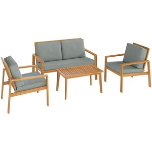 Transform your garden into a haven of relaxation with the Outsunny garden table and chairs set. This four-piece set, featuring a loveseat, two armchairs and a garden table, promises comfort with its soft cushions, slightly reclined backrests and wide seats. Crafted from 100% acacia wood with a varnish finish, it's a stylish choice for any conservatory or balcony furniture set. Specifications: ● Colour: Light Grey, Charcoal Grey ● Material: Acacia Wood, Polyester, Sponge, PP Cotton ● Loveseat Dimension: 126W x 70D x 78H cm ● Armchair Dimension: 68W x 70D x 78H cm ● Table Dimension: 80W x 50D x 42H cm ● Seat Dimension: 114W x 50.5D cm (loveseat), 56W x 50.5D cm (armchair) ● Seat Height: 35 cm ● Back Dimension: 114L x 49.5H cm (loveseat), 56L x 49.5H cm (armchair) ● Armrest Dimension: 60W x 55H cm ● Seat Cushion Dimension: 114L x 51W x 8T cm (loveseat), 56L x 51W x 8T cm (armchair) ● Pillow Dimension: 57L x 40W x 17T cm ● Weight Capacity: 160 kg (per seat), 50 kg (table) ● Item Label:
