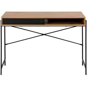 Featuring clean lines and a sleek build, this desk is a minimalist addition suitable for any office or room. Sturdy powder-coated metal legs provide support to the ash tabletop, which offers easy cleaning. Utilize the sliding metal door underneath the table to conceal your papers and clutter, maintaining a tidy workspace. Borough Wharf Colour (Top/Frame): Oak/Black