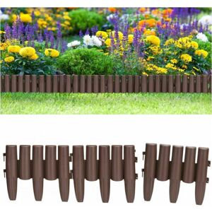 Elegant and practical garden edging for lawns and flowerbeds! This versatile edging allows you to easily and quickly demarcate your outdoor spaces, whether it is lawn or flowerbeds. Simply push the palisades into the ground and that's it! Thanks to the flexible connectors, you can also easily place them in corners or angles. Calculation example: Set of 10 garden edging (1 element = 29 cm) Product advantages: Ideal delimitation for paths, paths, lawns and flower beds Weatherproof, waterproof, shockproof and frost-proof garden edging - UV-stabilized, plant-friendly and elastic contour Easy to assemble Can also be placed in corners and angles Durable and resistant Technical data: Material: plastic Dimensions - 1 element (WxH): 29 cm x 24 cm (with ground spike) Look: wood Scope of delivery: Garden edging - quantity according to your choice