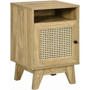A bedside table, with a subtle difference. This HOMCOM dresser features a main door, fitted with a middle rattan weave panel this subtly brings a touch of the outside into your indoor styling. Made from particle board and MDF blend for a strong structure, it's finished in a wood-effect look natural beauty. The four-legged base provides plenty of support and it comes complete with anti-tipping straps to secure to a wall safely. Specifications: ● Colour: Natural ● Materials: Particle Board, Rattan, MDF ● Overall Dimension: 39W x 35D x 60H cm ● Shelf Dimension: 36W x 30D x 10H cm ● Cupboard Inner Dimension: 36W x 33D x 30H cm ● Floor Gap: 15cm ● Weight Capacity: 30 kg ● Item Label: 831-599V02ND Features: ● Versatile design: not just a bedside table, but also a side table, telephone table and sofa side table ● Comes with a bottom cupboard, top shelf and flat table top for storage ● Rattan weave panel on the cupboard door for a natural look ● Particle board and MDF blend structure is