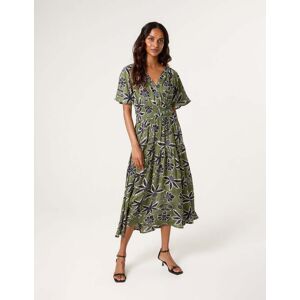 Tropics made for the summer. This tropical printed dress is a lovely option to wear in the office. Team with pumps, providing a formal and subtle summer time look. Blue Vanilla Women's Khaki Notch Neck Elastic Tropical Print Dress Size: Small