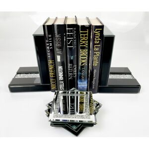 Display your favourite books in style with this pair of mirrored glass bookends. A strip of crushed diamante crystals features down the centre, reflecting the light in every direction. Add sparkle to your dining table, coffee table, side table, or all 3 with our set of 6 mirrored glass square coasters. Featuring a silver glittered enchased border, adding extra elements of style and glamour with twinkling reflections in each direction Fairmont Park Colour: Black