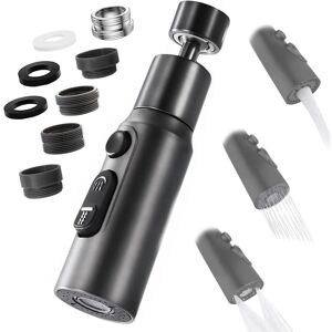 Three Water Jets ① Double-knife pressurized water. Strong water pressure, high-pressure blade flushing mode to clean stubborn stains; ② Soft bubble flow. Soft water jet cleaning mode to prevent water splashing; ③ Wide-angle shower water. Large area covered by water flow for washing fruits, vegetables, sinks, etc. 360 Degree Rotation Widen the water outlet angle in all directions, fully expand the water outlet range, solve the problems of fixed faucet water outlet angle and limited activity space, make it easier to clean your plates, fruits and vegetables. clean items, wash the countertop, save time and effort. Suitable for 95% faucets The faucet accessory comes with 5 adapters for 95% of mainstream faucets on the market: M22-FM20, M22-M20, M22-M22, M22-FM24, M22-M24 (suitable type: faucets with internal thread / external thread of 20mm, 22mm, 24mm). Please check the type and diameter of your fitting, then select "install the appropriate adapter"; can be installed on kitchen faucets,