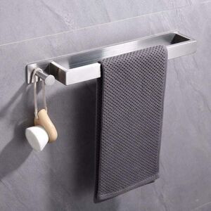 Dimensions: 40 x 4.5 x 6 cm Material: SUS304 stainless steel, rust-proof, corrosion-resistant to ensure a long service life. Classic square bath towel rack: noble and elegant, enough space to dry towels more easily, very suitable for your bathroom, organize your towels, bath towels, etc. Drill-free installation: just peel off the self-adhesive pad from the back of the towel rack and stick it on the smooth surface of the wall. Tips: Please wait 24 hours before hanging anything. Our self-adhesive bath towel racks are not suitable for wallpaper or painted walls.