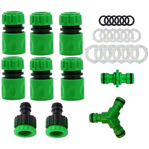 Green 4-point quick connector *6 Green double channel *1 Green 1/2*3/4 European conversion * Green T-shirt*1 Rubber pads *6 sets Material: The hose connector is made of high-quality impact-resistant ABS plastic, the strong and durable material will extend its service life. Suitable for standard Hozelock connectors. Widely used in gardening irrigation, flower watering, garden irrigation, car washing, garden irrigation, etc. Double male hose connectors, compatible with 1/2" diameter hoses; 1/2" female to female quick connector, allows you to connect 2 lengths of hose equipped with female connectors, quickly extending hose lengths when needed