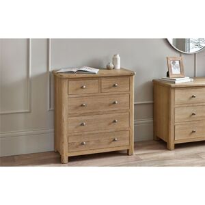 Exquisitely designed, the 3 + 2 Drawer Chest seamlessly blends timeless grace with modern aesthetics. Adorned in a limed oak finish with gracefully curved edges, it imparts charm to every bedroom. Housing three large and two smaller drawers, this chest offers generous storage space. Tailor its appearance to your taste by opting for classic polished silver handles or infuse a modern twist with cupped handles.