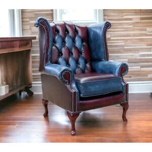 HANDCRAFTED IN ENGLANDBloomsbury Queen Anne Patchwork Leather Armchair Made in Oxblood & Grey LeatherThe Chesterfield Patchwork Classic Armchair. The Chesterfield Leather Sofa with it's unique Low Back Style, Deep Buttoned Arms and Back complemented with a Buttoned Front Border. The Flat Fronted arms on the Chesterfield Leather Sofa are attractively embellished with lines of individual stud nails. An undoubted winner in any room from the cottage to the boardroom. A classic of its kind ;Traditional Vintage British Style.FREE Swatch Sample Service to Help Decide on Colours & To See Material in Person (Highly Recommended)Manufactured In EnglandSize: 1 seater (Please speak to us for bespoke sizes, colors and material prices) Material - Real LeatherSome Assembly May be Required on Certain Products Only, Majority of Times Our Delivery Men will Unpack and Delivered Without Any Hassle. Please Speak to Us for More Info Please note picture is for illustration purposes only as no two sofas will be the same.Each Piece of furniture is individual.Wingchair Dimensions : H 105cm x W 88cm x D 89cm apprx. Designer Sofas For You Ltd Upholstery Colour: Red/Pink, Leg Colour: Natural