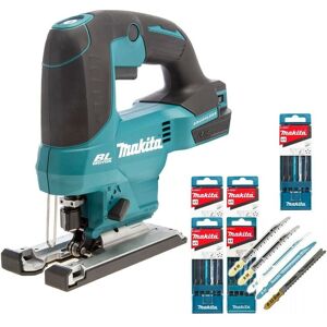 Makita DJV184Z 18V Brushless Jigsaw LXT Kit High cutting performance Tool-less blade clamp for easy blade change with one hand Orbital cutting function: 3 orbital settings + straight cutting Lock-on function Soft start LED with light up function during standby mode Variable speed control by trigger and dial Constant speed control Electric brake Anti-restart function Soft no-load mode Dust collection (forced dust collection) Compact and lightweight design This is a Bare Unit - does not come with batteries or charger Includes 10 Piece Jigsaw Blades 50mm 70mm Wood Metal Plastic Aluminium Makita B-44410 jigsaw blade set includes 10 popular blades to cut a variety of materials including wood, steel, plastic, aluminium and stainless steel and includes a plastic double sided case. Features Length: 50-70mm 2x B10S, 2xB-16, 2xB-13, 2xB-23 & 2xB22 Plastic case Set Includes: 2 x B-13 Jigsaw Blades for Wood and PVC 2 x B16 Jigsaw Blades for Wood and PVC (fast cut) 2 x B10S Jigsaw Blades for Wood