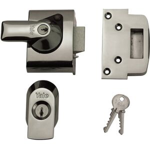 This Yale PBS2BLX has a hardened case finished in Brasslux Supplied with 2 x keys Yale's maximum security BS2 nightlatches are British Standard approved to ensure the highest level of security for timber external doors. They are Kitemarked to BS 3621:2007 and are recommended by insurance companies. The lock is key operated from the outside and both key and lever handle operation from the inside with the internal handle being lockable for increased security. The latch automatically deadlocks on closing the door and the snib function enables the latch to be held back. The lock uses a 6 pin high performance cylinder, and has a 20mm bolt which is anti-carding. It also has a 10 year guarantee. The BS2 nightlatches have a 40mm backset, this is the measurement from the edge of the door to the centre of the keyhole. Locks with a 40mm backset are normally used where there is restricted space, such as on a glass panelled door Case Width: 89mm Case Height: 90mm Case Depth: 33mm.