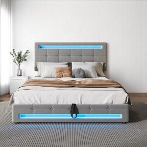 This upholstered double bed (135x190 cm, 4ft6) features square embellishments on both the head and foot of the bed, providing a stylish and sophisticated look in velvet. Made from a combination of luxurious velvet and sturdy iron, this bed ensures long-lasting comfort and durability while adding a touch of elegance to any bedroom decor. Ivy Bronx Colour: Grey