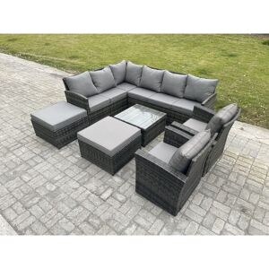 Important: Please put the gas fire pit on the glass top not under the glass .Do not cover the igniter with lava .please refer to the picture in the listing. we strongly recommend using 5 kg gas tank. Before using the fire pit ,please check it carefully if there is any leakage at the joint place or the hose . if the gas bottle is not fixed correctly or the hose has some leakage it may cause danger . Set dimensions: • 2x 3 Seater Sofas with single armrest:167W x 65D x 66H cm • 2x Chair :74W x65D x66H cm • 1x Side table:65L x 65w x 66H cm • 2x Small fully assembled footstools :40L x 40W x 34H cm • 1x Firepit Table : 140L x 80W x70H cm Dark grey mixed rattan with dark grey fabric .Color may vary due to light or monitor .we are unable to return the item due to this problem .please consult before purchase if you have requirement on color saturation. Great Price Compared With Other Online Or Offline Store For Fire Pit Set. Items Comes Flat Packed And Easy to Assemble,Sturdy Galvanized Steel