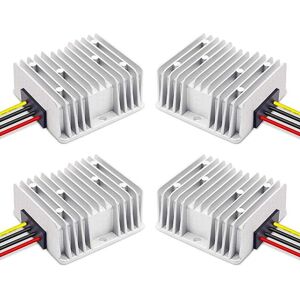Upgrade Waterproof Level: IP68, moisture-proof and shockproof protection. Safer: Built-in smart chip, comprehensive protection against over/under voltage, over current, overload, overhead, over temperature and short circuit. Better Heat Dissipation: Upgraded fin-type heat sink with thick aluminum plate inside the fixture to help dissipate heat more efficiently. Sturdy and Safe Materials: Die-cast aluminum shell and high-quality design. 96% Conversion Efficiency: Multiple intelligent protection function of timing rectification technology with high conversion efficiency and stability. Color: Silver Material: Metal Size: 7.4x7.4x3cm Package Contents: 4 x DC Voltage Converter 48-12V 20A Only the above package content, other products are not included. Note: Light shooting and different displays may cause the color of the item in the picture a little different from the real thing. The measurement allowed error is +/- 1-3 cm.