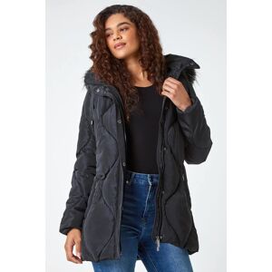 Quilted Faux Fur Hooded Coat from Roman. Elevate your Winter warmers this season with this quilted coat. Cut from a quilted woven fabric this coat is padded throughout for warmth. It features a fully open, zip front complete with a secure storm flap for extra protection. It features cosy full-length sleeves and practical side pockets. Finished with a faux fur trimmed hood this coat ticks all the boxes. Pair with knitwear, denim and boots! Roman Women's Quilted Faux Fur Hooded Coat in Midnight Size: 10