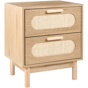 Modern Nightstand with Metal Legs. This contemporary nightstand combines style and practicality with its clean, modern design. Made from engineered wood, with wood-like finish, it features two spacious drawers for convenient bedside storage. The sleek metal legs and handles add a touch of sophistication, making it a perfect fit for any modern bedroom. Details: Product Type: Bedside Table Style: Modern General Color: Brown, White Shade: Light Brown Material Type: Engineered Wood Main Material: MDF Additional Material: Iron Frame Material: Engineered Wood Legs material: Engineered Wood Top Material: Engineered Wood Drawers: Yes Finish: Melamine Leg Caps/ Pads: Yes Number of Drawers: 2 Shelves: No Dimensions: Depth: 40 cm Width: 40 cm Height: 52 cm Weight: 10 kg Drawer Weight Capacity: 10 kg Top Weight Capacity: 60 kg Offer Includes: 1 x Bedside Table Key Features: Functional and Capacious Drawers, Elegant Design, Perfect for Both a Bedroom and a Living Room, Stable and Durable