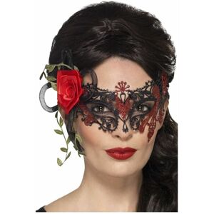 Day of the Dead Senorita Mask, Full Face, Red & Black, with Roses & Veil, on Display Card - (Gender FEMALE) - (Audience -ADULT) - (Colour -RED&BLK) - (Size - ONE SIZE) - (Safety -This item is a fancy dress accessory for adults. It is not a toy. Warning! Keep away from fire.)