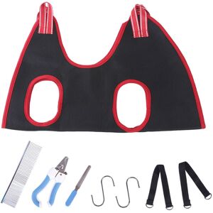 Dog Nail Clipper Hammock - Does your dog let you trim her/his nails? - This dog nail clipper hammock will help calm down your very active and nervous dog while clipping your nails. It is also a good helper for cleaning teeth, eye drops and ear drops. DURABLE MATERIAL--The outer fabric is made of soft and stretchy air mesh material for cushioning protection. The inner layer is made of high-density knitted material, which is easy to wash and durable. 6 in 1 Pet Grooming Kit -- 1 Dog Nail Holder for Grooming, 2 Extensions, 1 Nail Clipper, 1 Grooming Comb, 1 Nail File. Please choose the right size - we offer S-shaped hooks for added stability. Please do the grooming after the baby is completely calm. We recommend doing this with an assistant. 【Handy Grooming Assistant】This perfect pet grooming hammock is definitely your best choice. With it, you can easily help your pet with care at home, including nail trimming, eye and ear care, bathing, hair trimming, injections, and more. Perfectly
