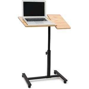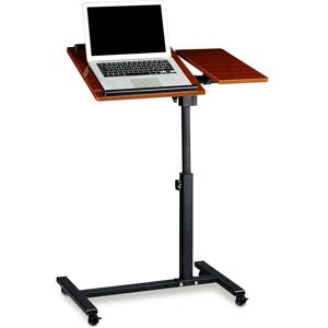 The rollable laptop table is ideal for working or surfing on your laptop in bed or from the sofa. The flat base frame can simply be pushed under the bed or couch. Thanks to the 5-stage height-adjustable tabletop, you can set the perfect working height yourself. The tiltable tabletop, which is equipped with stopper strips on both sides, is also particularly practical. In addition, the laptop desk has a separate mouse tray. Laptop desk in detail - Dimensions W x D: approx. 61 x 40 cm - Height: approx. 68 - 88 cm - Dimensions table top W x D: approx. 40 x 40 cm - Dimensions mouse tray W x D: approx. 20 x 40 cm - Height of sliding frame: approx. 7 cm Further details of the rolling table - Weight: approx. 4.9 kg - Load capacity: approx. 15 kg - Material: MDF, metal, PVC - Colour: Brown, white Mobile laptop side table - Table top can be adjusted in height in 5 steps - Mobile thanks to 5 castors, 2 of which have parking brakes - Swivelling table top with 2 stopper bars and mouse tray - Ideal