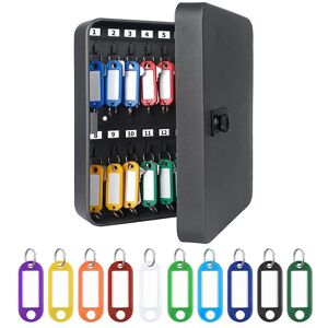 Wall mounted cabinet: Installed indoors only. There are 28 hooks and numerical stickers that can arrange keys in numerical order and keep them neat and orderly. Very suitable for schools, families, companies, real estate agents, etc Combination lock: A 3-digit code lock provides 1000 combination methods. The internal control lever with password locking can effectively prevent accidental resetting Resettable code: Initial code: "000". Push the control lever inside the cabinet from A to B, set the required code, and then pull the control lever back from B to A to complete the code reset; Safety structure: 8 inches long x 3 inches wide x 9.8 inches high. The sturdy piano hinge makes it unlikely to be pried open to avoid forced entry. It comes with a steel key cabinet with 28 keys and 40 randomly colored key labels. Safety structure: 8 inches long x 3 inches wide x 9.8 inches high. The sturdy piano hinge makes it unlikely to be pried open to avoid forced entry. It comes with a steel key
