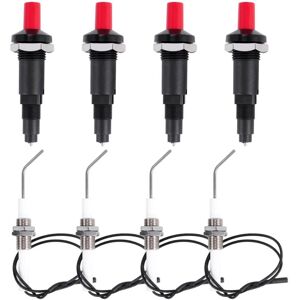 Product information: distance is . 3 to 5 mm, wire length is . 30 cm, pin straight length is . 19.5 mm, 135 degree at head 9.0 mm, output voltage is above or equal 20 kv Install and use: this piezo igniter is easy to install and use; It is equipped with a threaded ignition pin 1, you only need to it to work effectively, and its service life is over 30,000 times Quality material: this product is made of quality material, the external material is PP plastic, and the copper screw is corrosion-resistant and not easily to be broken Application: when you are camping or in the wild, you need to make barbecue, which is easy and convenient to light with this piezo igniter; This accessory is suitable for a variety of barbecue grills, and is suitable for most products that use , natural gas as fuel for ignition colour: black + red Material: plastic Package Contents: 4 x Piezo igniter kit Only the above package content, other products are not included. Note: Light and different displays may cause