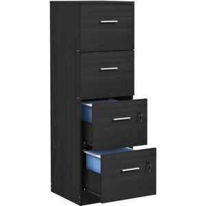 For a place to hold plenty of office files, then look to this HOMCOM filing cabinet for home. Offering four drawers - offering plenty of space for the files you need hanging bars in each to hold folders and files - keep them neatly organised and easily accessible. Made from particle board, this filing cabinet is a robust - presented in a wood-effect finish for a classic and versatile look. Complete with two locks on bottom drawers - keys included. Specifications: ● Colour: Black Wood Effect ● Material: Particleboard ● Overall Dimension: 40W x 42D x 130.8Hcm ● Drawer Inner Size: 32W x 33.5D x 24.5Hcm ● Bottom to Floor Height: 8cm ● Weight Capacity: 17kg (Overall), 5kg (Tabletop), 3kg (Drawer) ● Item Label: 924-086V80BK Just so you know: this item ships and arrives in separate boxes. Delivery times may vary with each box. Box quantity: 2 Features: ● Four drawers. Plenty of room for office files ● File hanging bars in all drawers of lockable filing cabinet ● Bottom drawers are