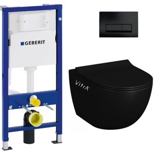 Opt for the modernity and ease of installation of the Toilet Set Duofix support frame + Vitra SENTO matt black rimless toilet + Softclose seat + Black plate (BlackSentoGeb-7). This toilet pack combines the Geberit and Vitra brands, products that combine practicality and aesthetics that are sure to satisfy you in your renovation projects. Discover the easy and seamless installation of the Geberit module with this helpful video guide. Click the link to get started! https://www.youtube.com/watch?v=QgP0aSEW2ZE Features of the Toilet Set Duofix support frame + Vitra SENTO matt black rimless toilet + Softclose seat + Black plate (BlackSentoGeb-7) : Geberit Duofix UP100 support frame + cistern for WC 112 cm (458.103.00.1) Vitra SENTO RIM-EX Matt black bowl (rimless) and ultra-slim softclose seat (7748B083-0075 + 120-083R009) Geberit Delta 50 Dual flush plate, Black (115.119.DW.1) Geberit Duofix UP100 support frame + cistern for WC 112 cm (458.103.00.1) : 112 cm galvanised support frame with